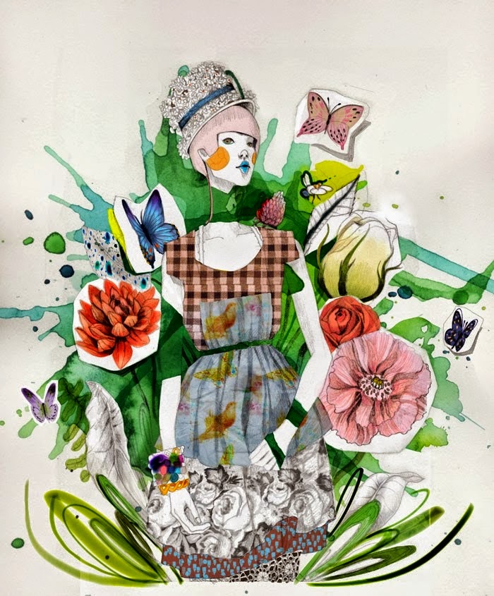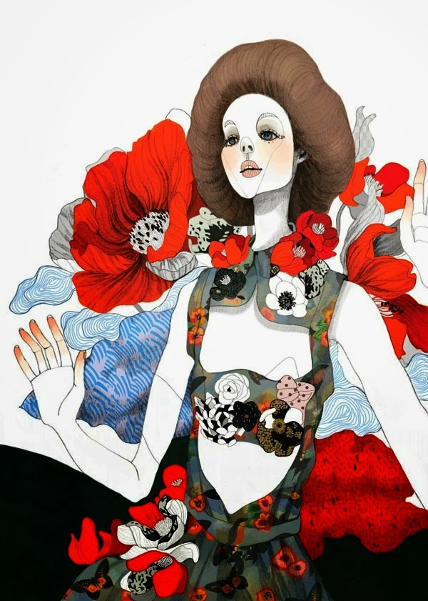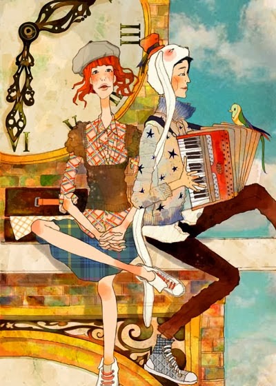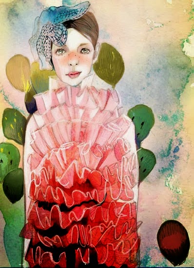 Lisant un article sur différents illustrateurs contemporains, quelle ne fut pas ma surprise, véritablement émerveillée, d'y trouver une superbe illustration signée Salcupie. Mais dans cet article, pas un mot sur cet artiste... uniquement en bas de page cette illustration